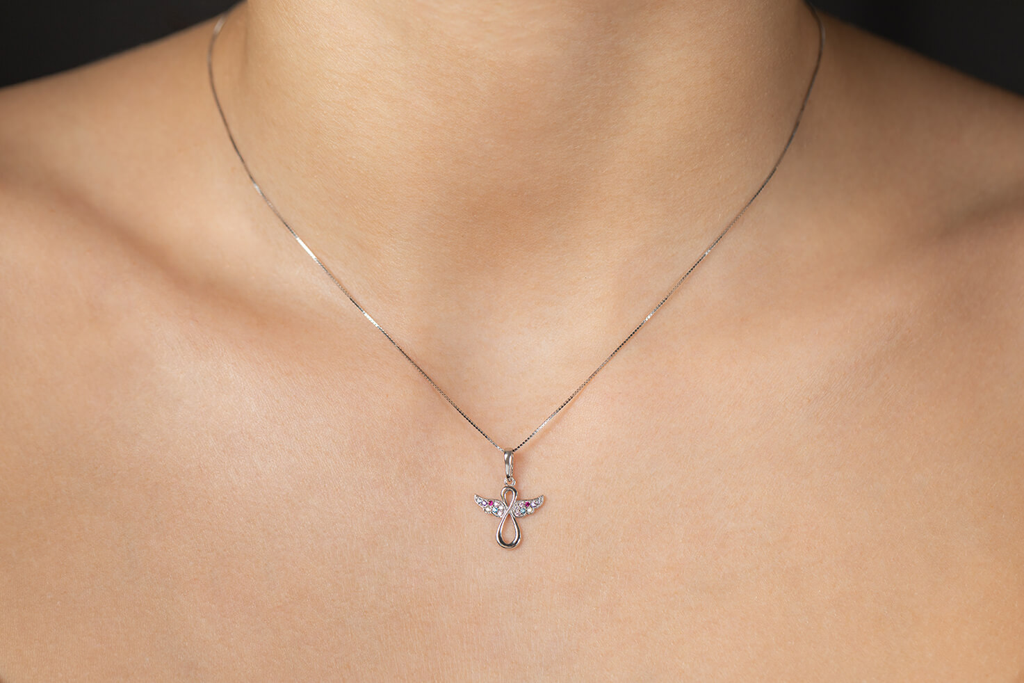 Popis produktu: Andělský přívěsek Agnes II, bílé zlato s barevnými zirkony