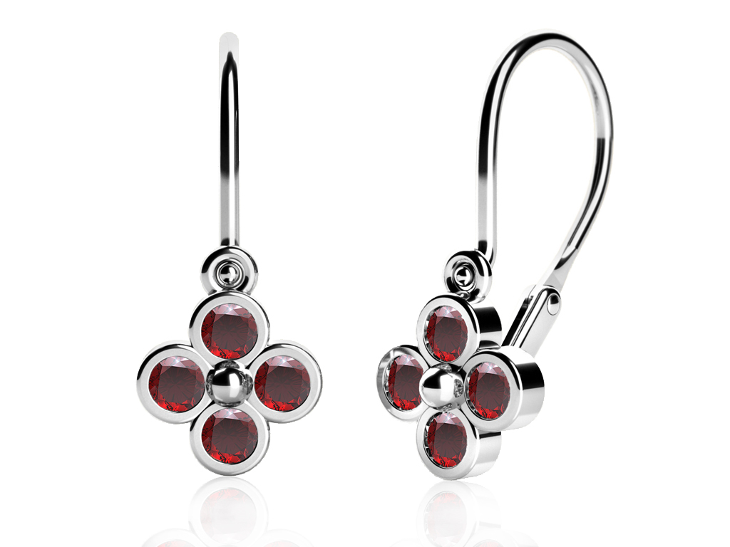 Popis produktu: Decentní dětské náušnice Alia, bílé zlato a červené zirkony