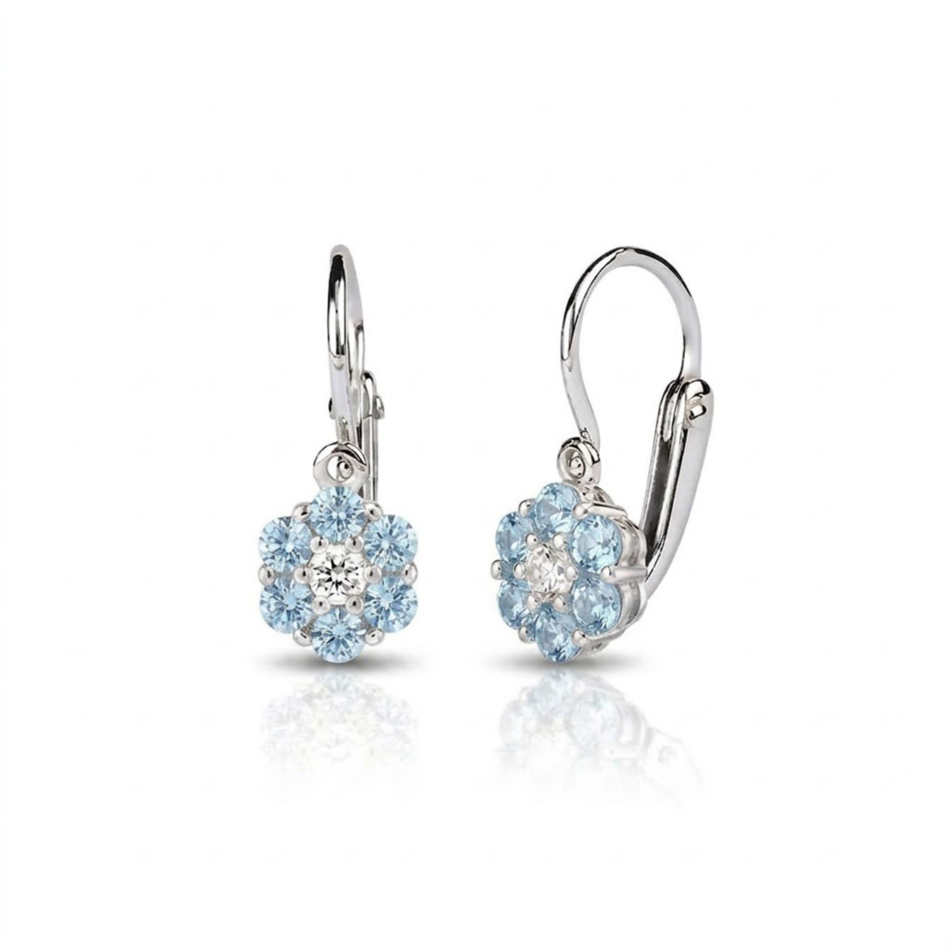 Popis produktu: Dětské náušnice Aimy, bílé zlato se světle modrými zirkony