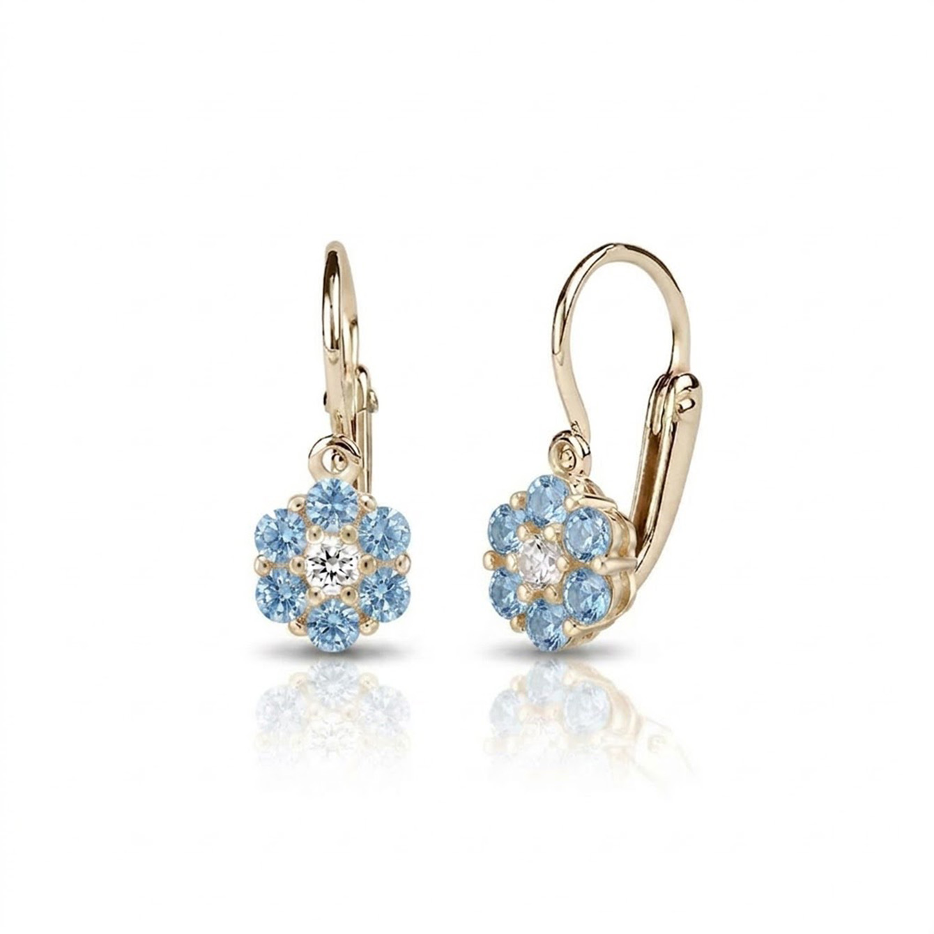 Popis produktu: Dětské náušnice Aimy, žluté zlato se světle modrými zirkony