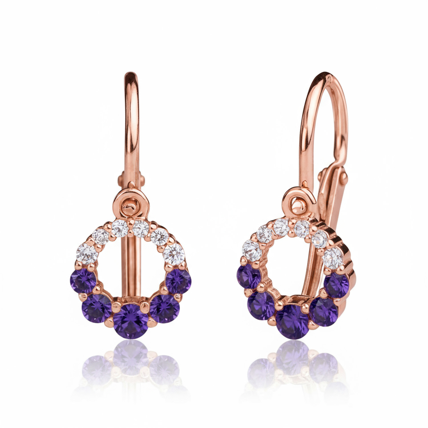 Popis produktu: Dětské náušnice Amalia, růžové zlato a fialové zirkony