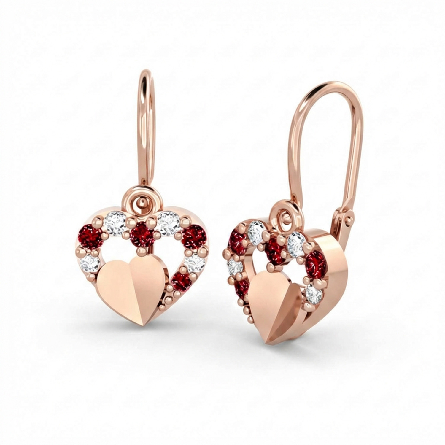 Popis produktu: Dětské náušnice Darcy, růžové zlato a červené zirkony