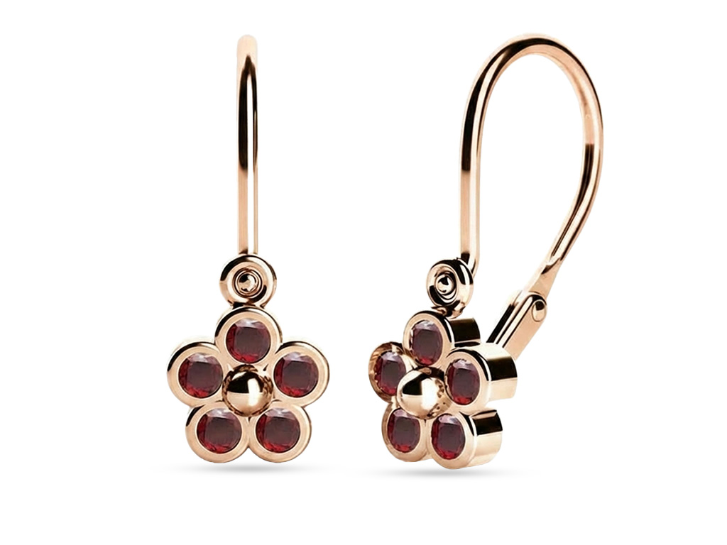 Popis produktu: Dětské náušnice Karsin v růžovém zlatě s červenými zirkony