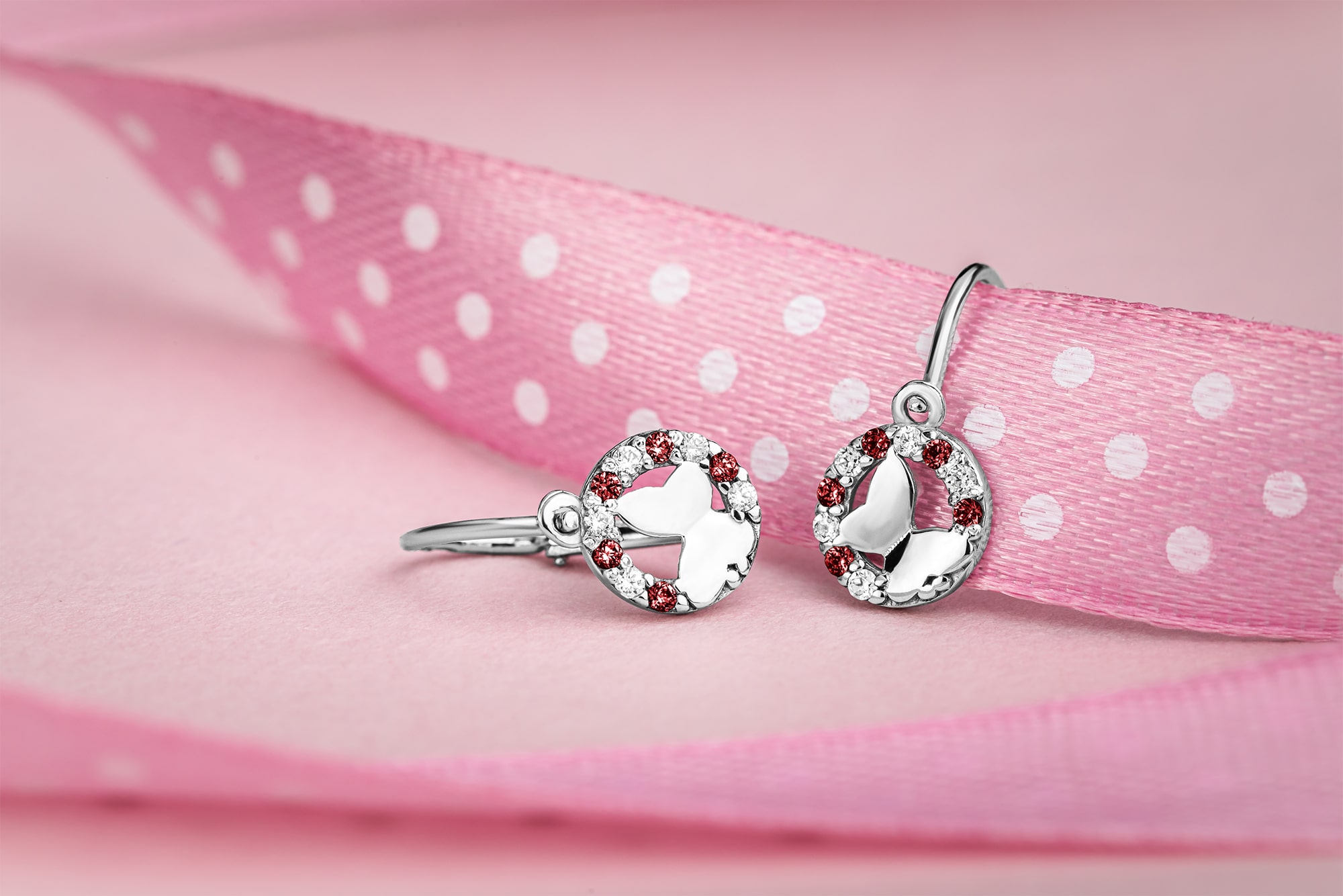 Roztomilé náušnice Mari ozdobí ouška Vaší malé princezny záplavou třpytivých zirkonů a motivem motýlka. Díky zapínání typu brizura náušničky snadno a rychle nasadíte.