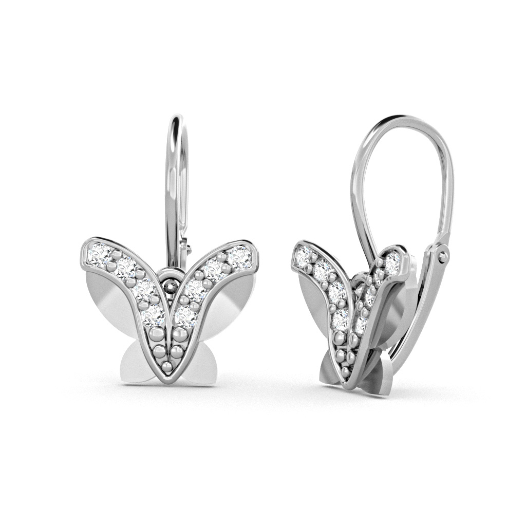 Popis produktu: Dětské náušnice Papillon, bílé zlato se zirkony