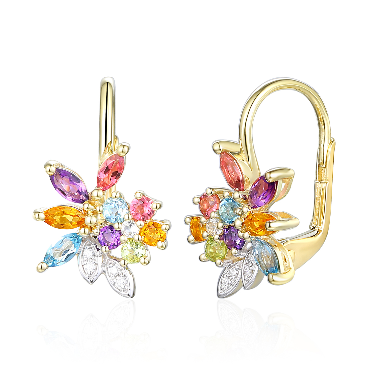 Popis produktu: Diamantové náušnice Elysia, kombinované zlato s brilianty a drahokamy