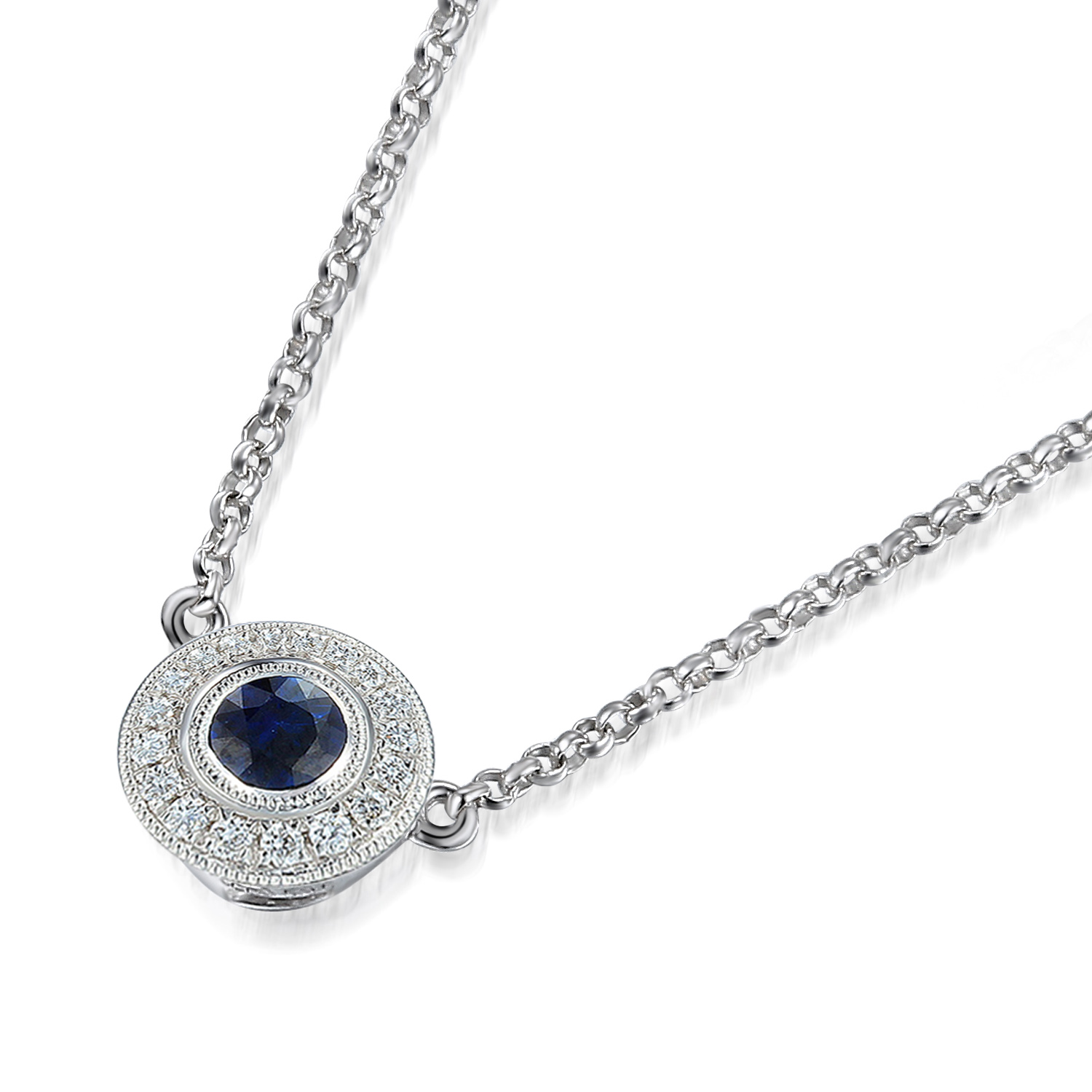 Popis produktu: Diamantový náhrdelník Lucienne, bílé zlato s brilianty a safírem