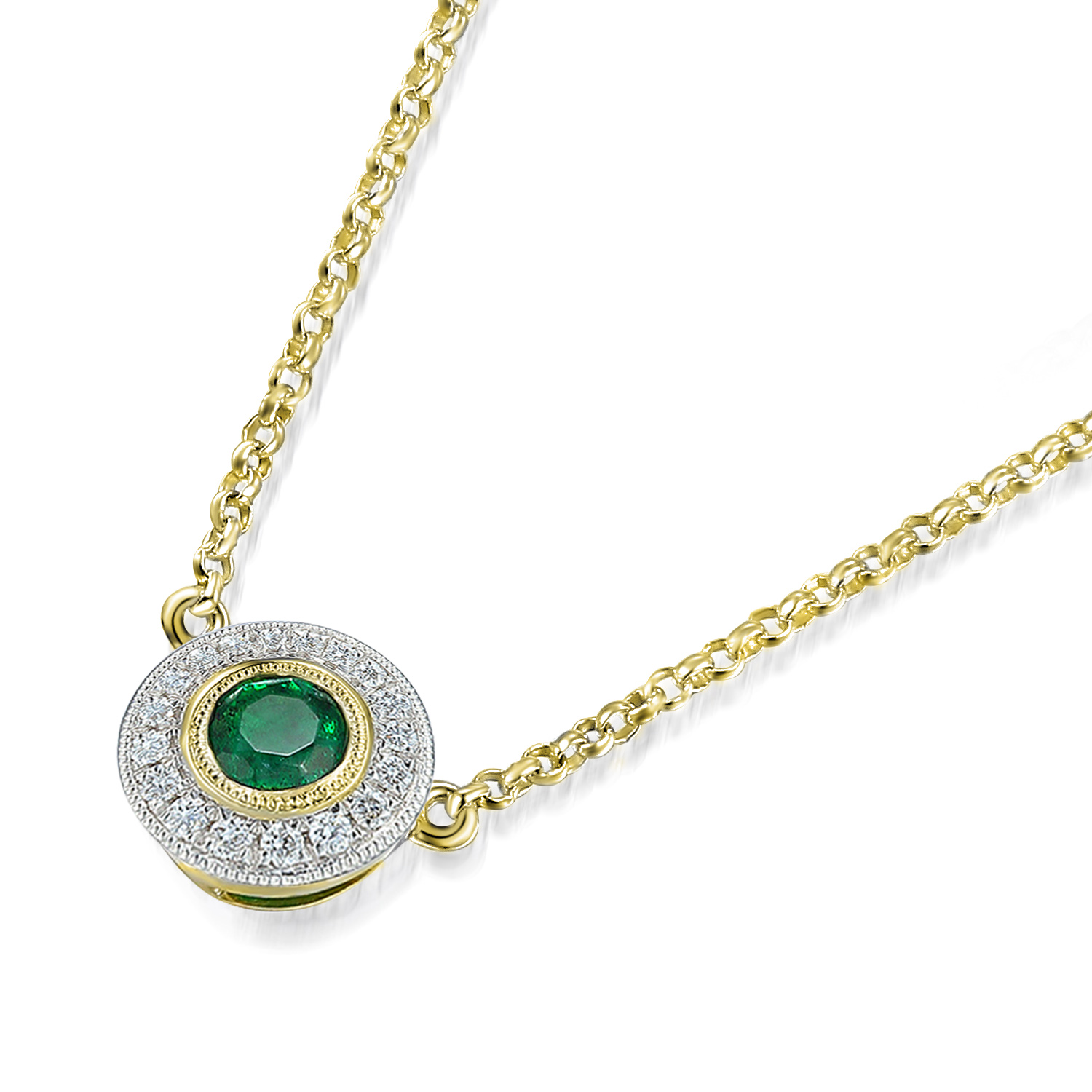 Popis produktu: Diamantový náhrdelník Lucienne, žluté a bílé zlato s brilianty a smaragdem