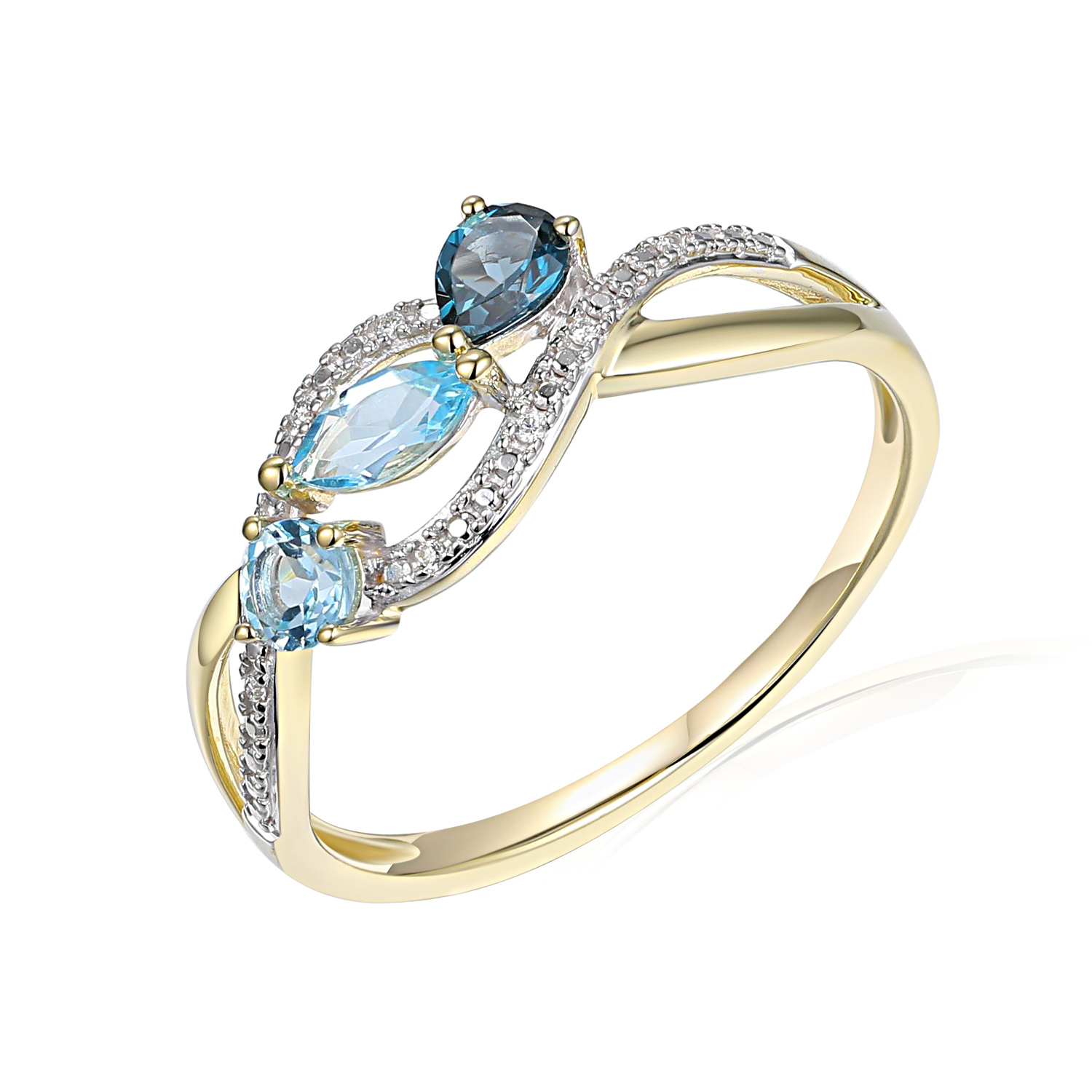 Popis produktu: Diamantový prsten Astrid, kombinované zlato s brilianty a blue topazy
