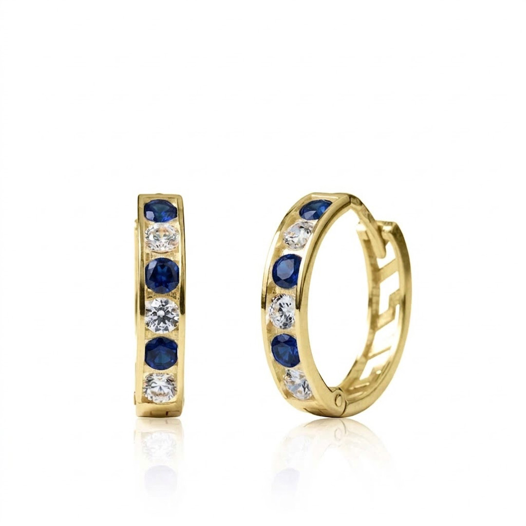 Popis produktu: Dívčí kruhové náušnice Elaxi II, žluté zlato s tmavě modrými zirkony