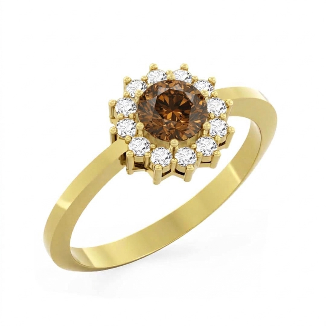 Popis produktu: Elegantní prsten Dion, žluté zlato s hnědým zirkonem