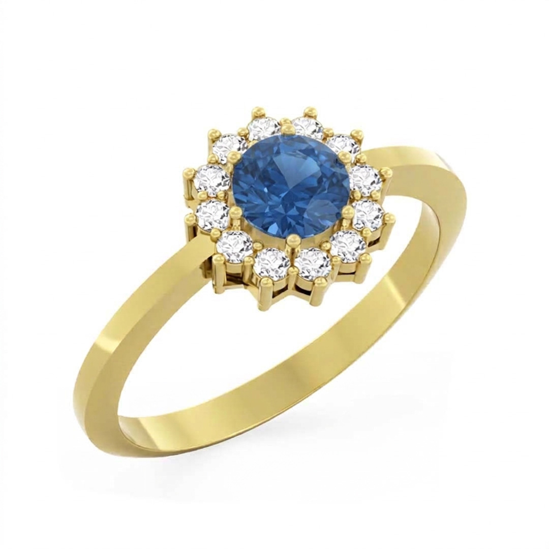 Popis produktu: Elegantní prsten Dion, žluté zlato s modrým zirkonem