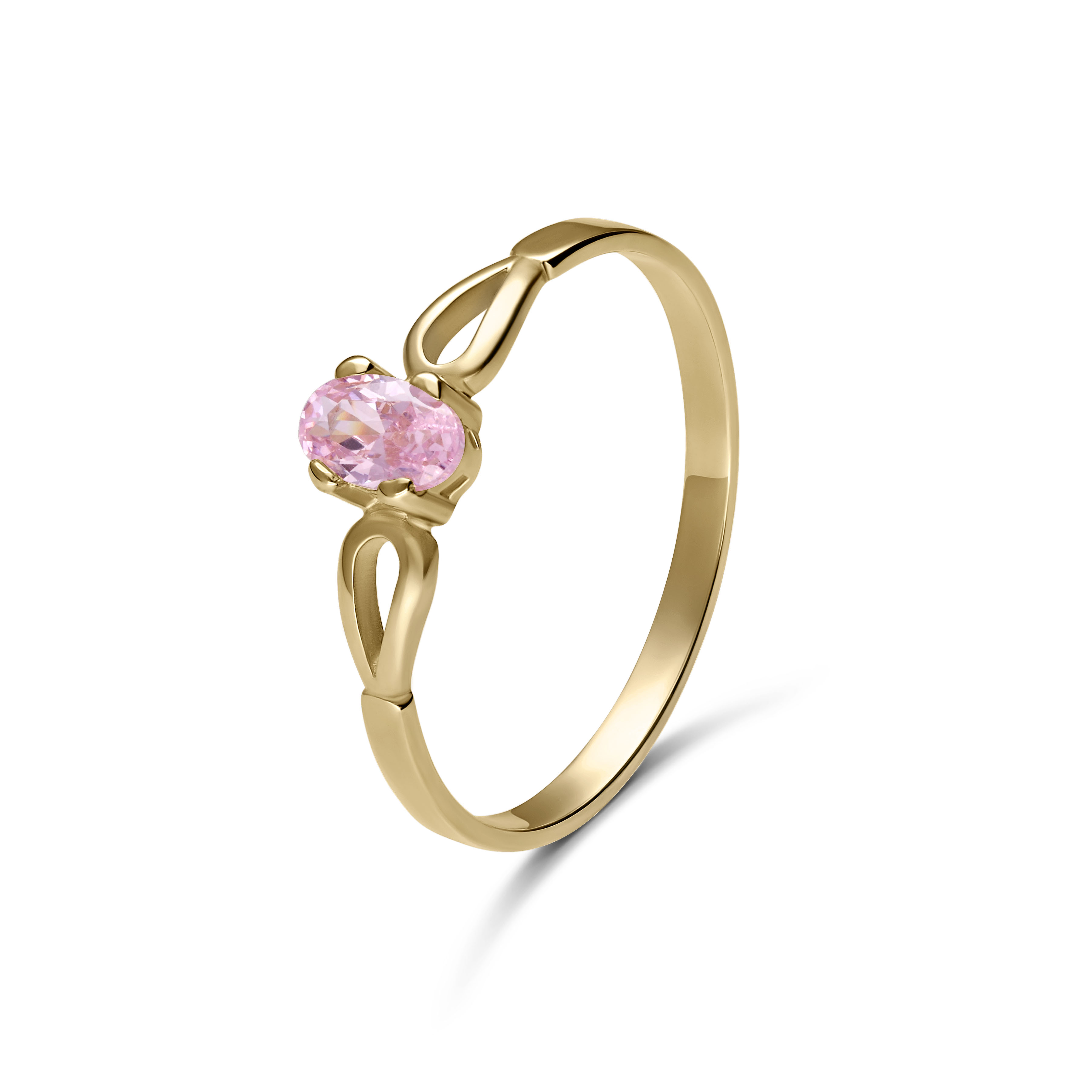 Popis produktu: Elegantní prsten Elyra, žluté zlato s růžovým zirkonem