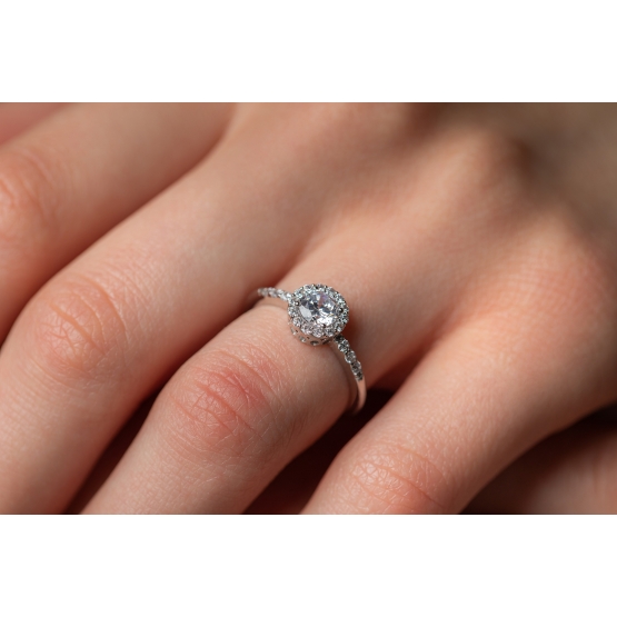 Popis produktu: Honosný zásnubní prsten Sari, bílé zlato se zirkony