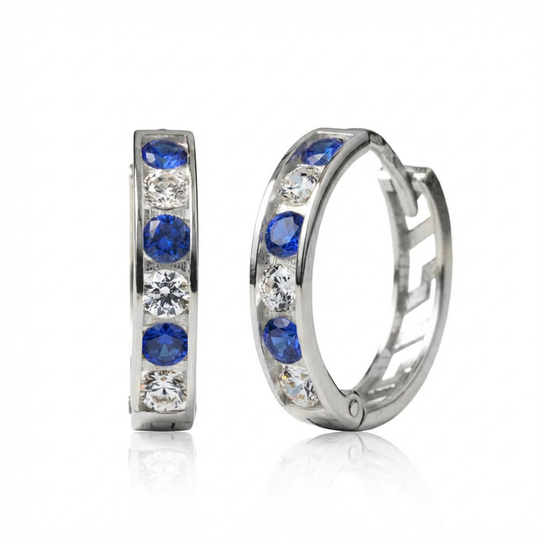 Popis produktu: Kruhové náušnice Elaxi, bílé zlato s tmavě modrými zirkony