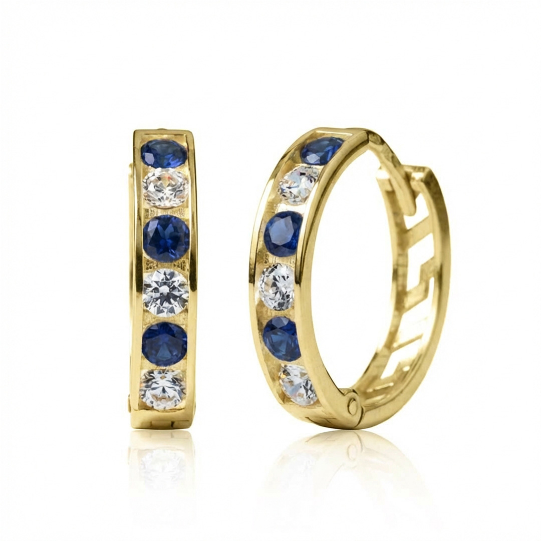 Popis produktu: Kruhové náušnice Elaxi, žluté zlato s tmavě modrými zirkony