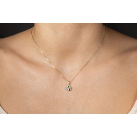 Popis produktu: Květinový přívěsek Carin, žluté zlato s různobarevnými zirkony