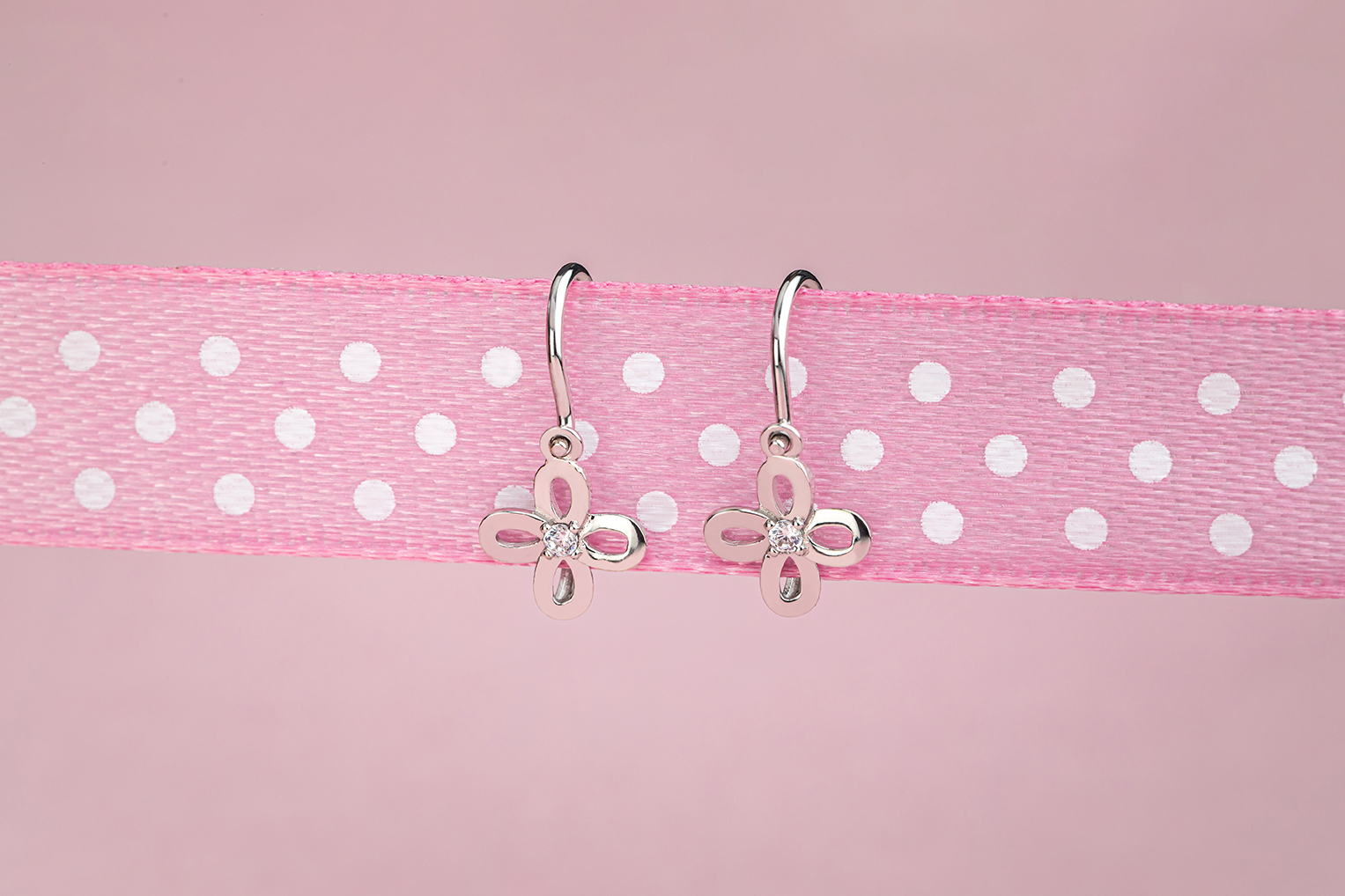 Popis produktu: Moderní dětské náušnice Floret, bílé zlato a zirkon