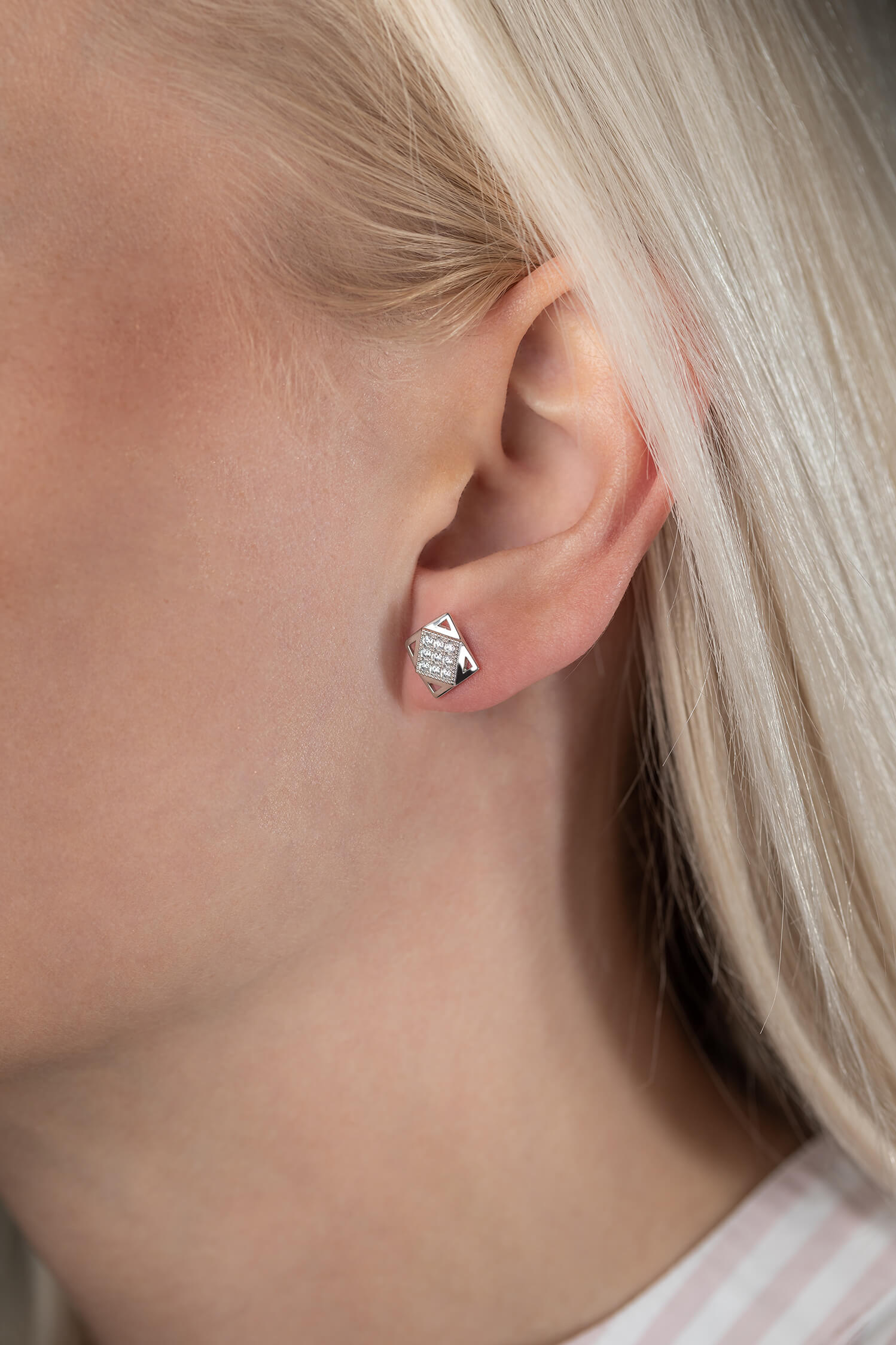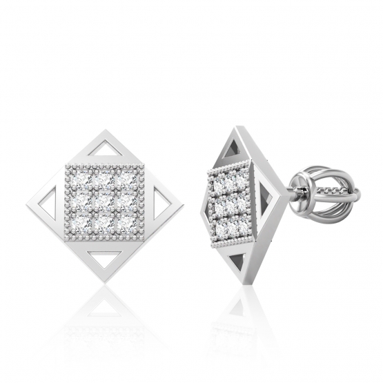 Popis produktu: Moderní peckové náušnice Kostka, bílé zlato se zirkony