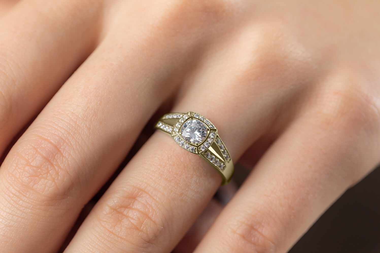 Popis produktu: Neobvyklý zásnubní prsten Gewenith, brilianty a žluté zlato