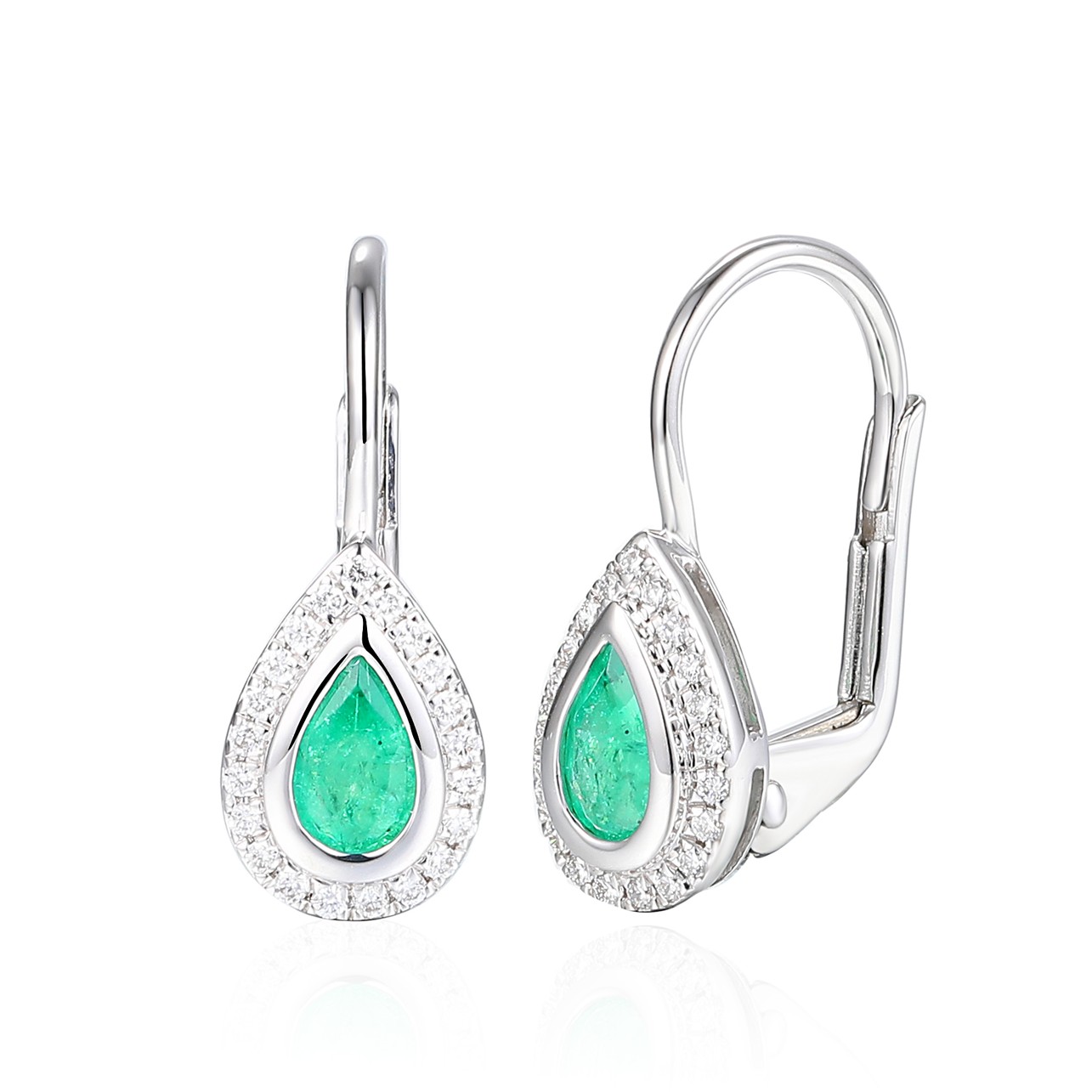 Popis produktu: Originální náušnice Lumivia, bílé zlato s brilianty a smaragdy