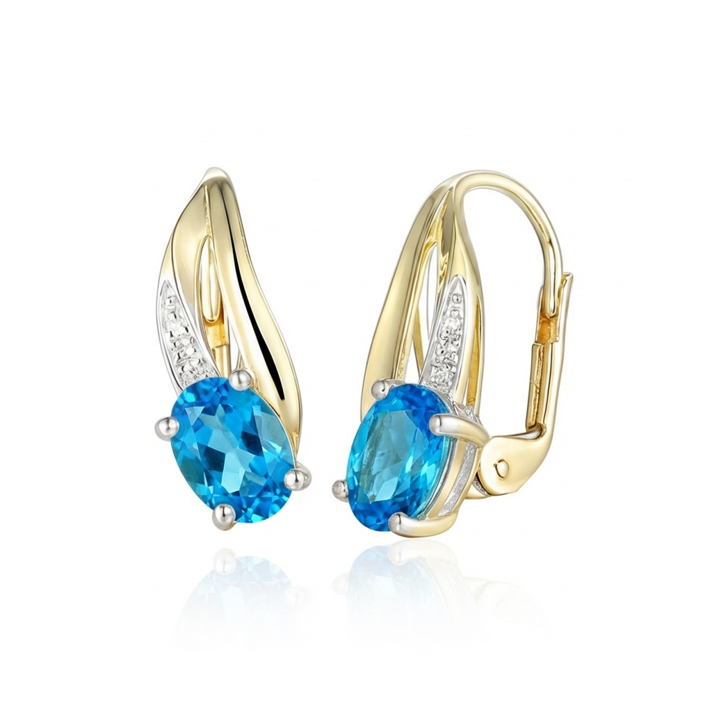 Popis produktu: Originální náušnice Marivia, kombinované zlato s brilianty a modrými topazy