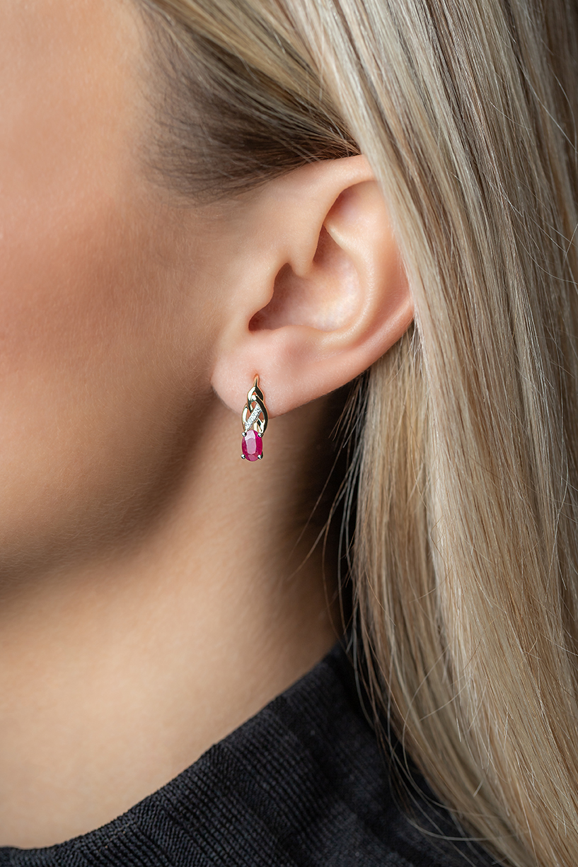 Popis produktu: Originální náušnice Scarlet, kombinované zlato s brilianty a rubíny