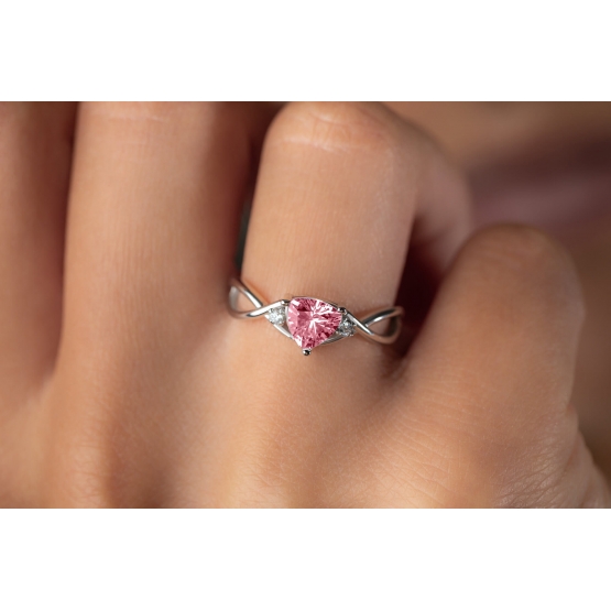 Zásnubní prstýnek Karin ozdobí ručku Vaší vyvolené trojúhelníkovým zirkonem v barvě růženínu. Ten je doplněn o drobounké kamínky, které dodávají šperku ještě větší lesk. Bílé zlato se hodí pro každou příležitost. V naší nabídce naleznete také přívěsek a náušnice ve stejném designu.