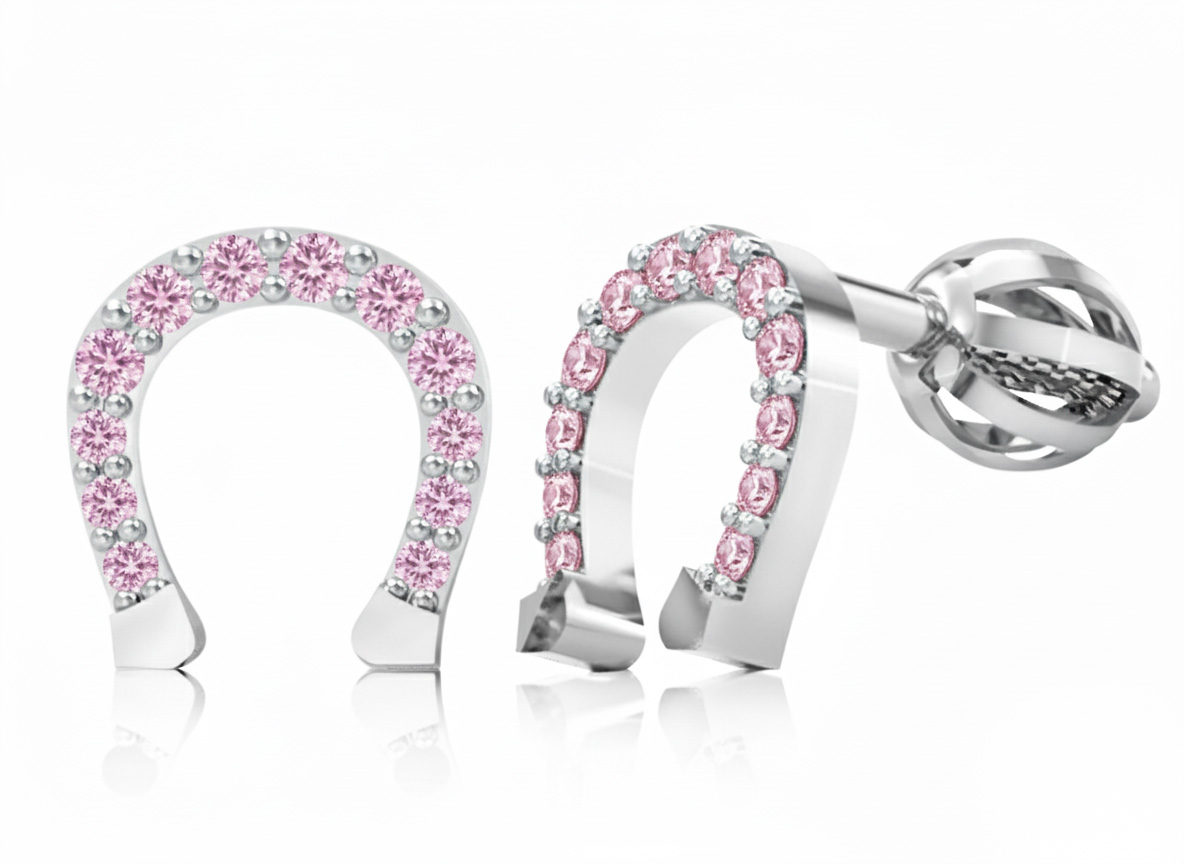 Popis produktu: Peckové náušnice Ariana ve tvaru podkovy, bílé zlato s růžovýmí zirkony