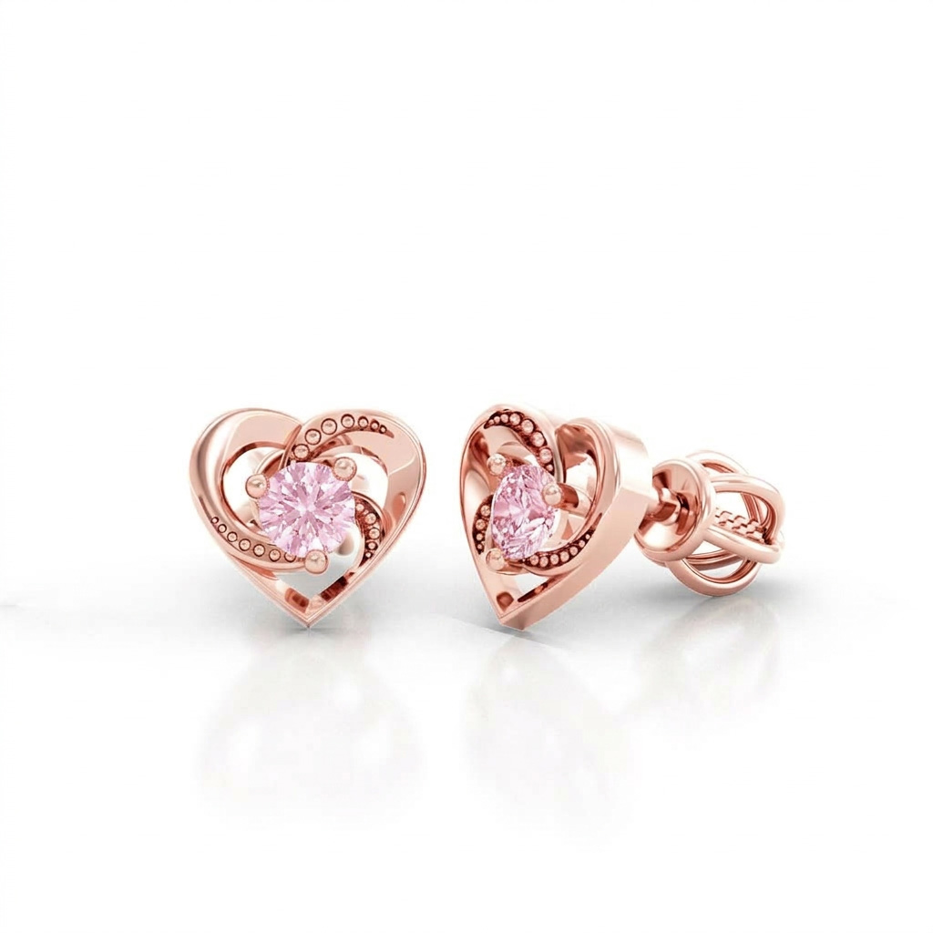 Popis produktu: Peckové náušnice Lylou ve tvaru srdce, růžové zlato s růžovými zirkony
