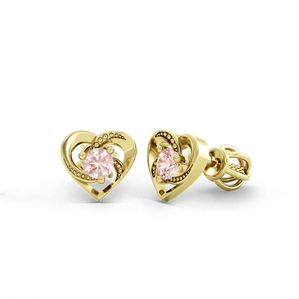 Popis produktu: Peckové náušnice Lylou ve tvaru srdce, žluté zlato s růžovými zirkony