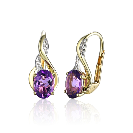 Popis produktu: Podmanivé náušnice Allegra, kombinované zlato s brilianty a ametysty