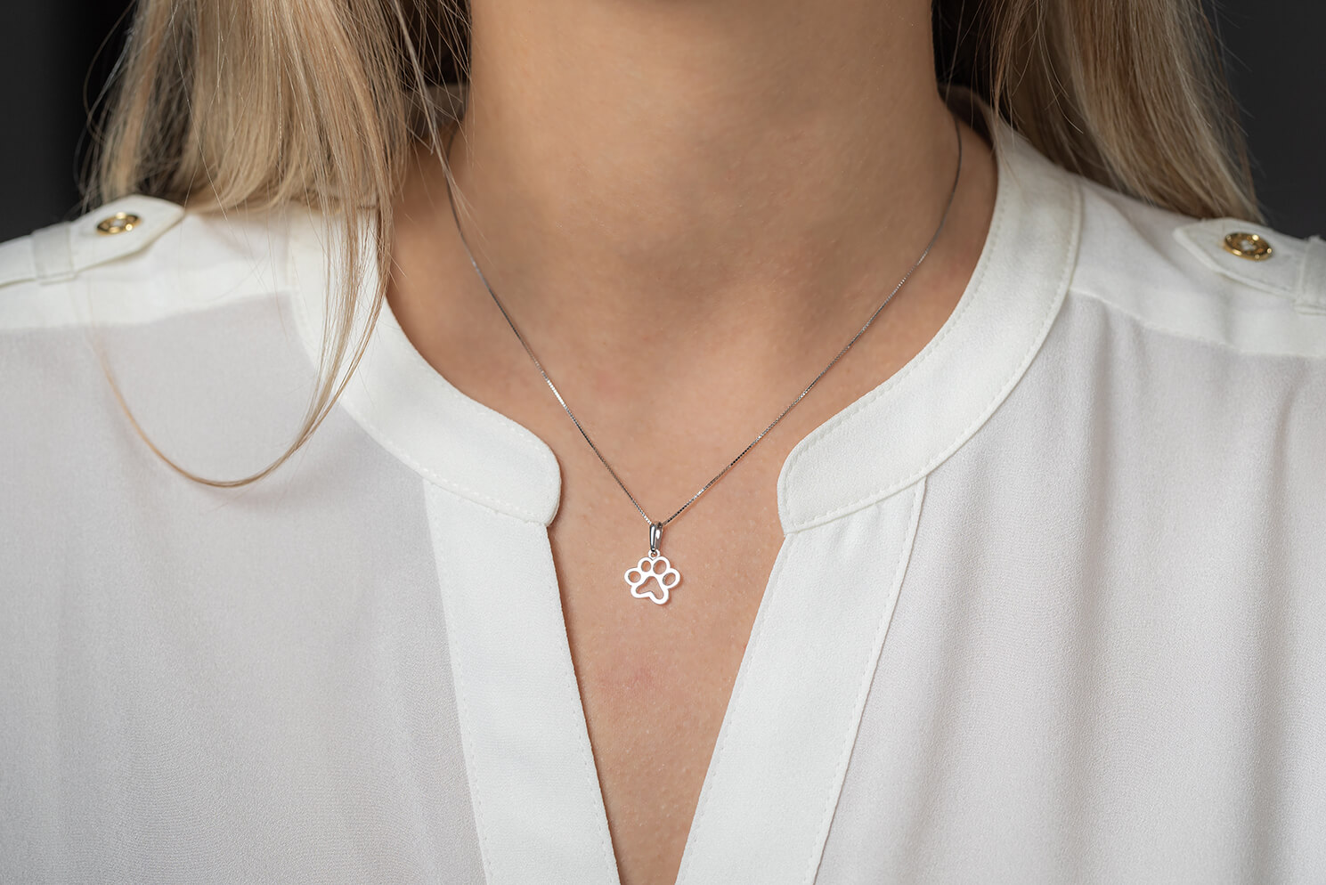 Popis produktu: Přívěsek Animalio Paw II ve tvaru tlapky, v bílém zlatě