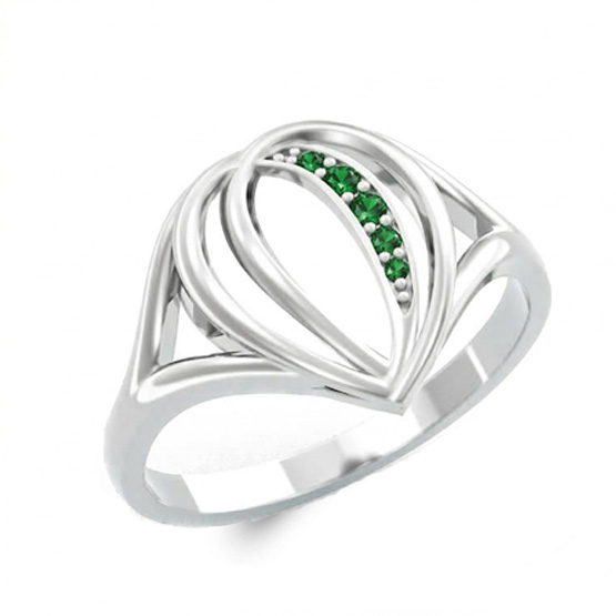 Popis produktu: Prsten Lacrima, bílé zlato se zelenými zirkony
