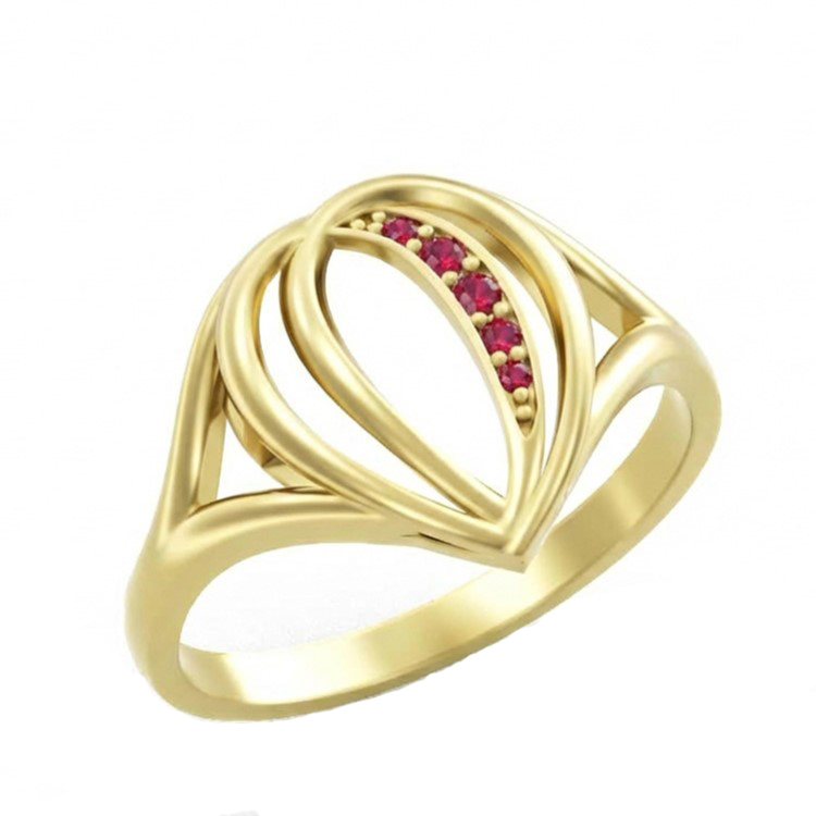 Popis produktu: Prsten Lacrima, žluté zlato s červenými zirkony