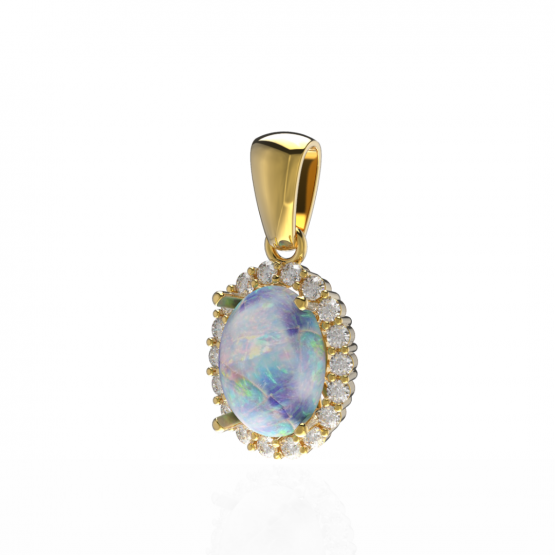 Popis produktu: Půvabný přívěsek Ophelia se syntetickým opálem a zirkony, žluté zlato