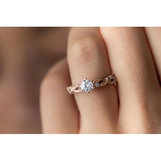 Popis produktu: Půvabný zásnubní prsten Rosette, růžové zlato a zirkony