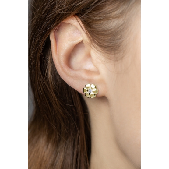 Popis produktu: Romantické náušnice Flower, žluté zlato se zirkonem
