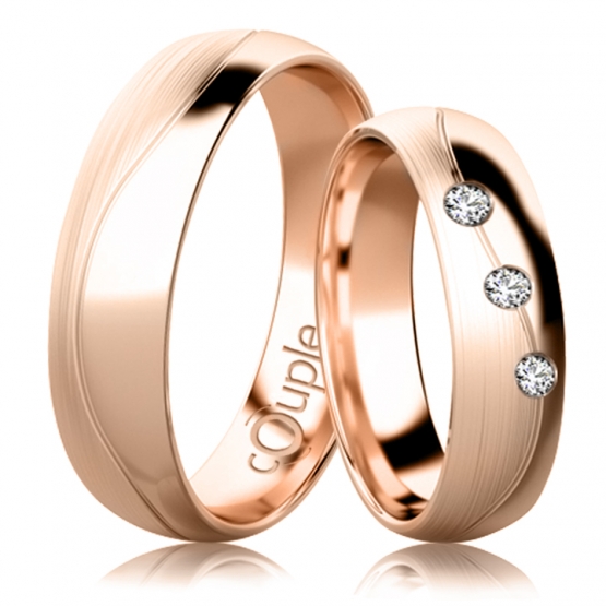 Snubní prsteny Missy zdobí po obvodu roztančená vlnovka. Moderní design se zde snoubí s elegancí drahého kovu. Vyberte si barvu zlata (bílá, žlutá, růžová či některou z jejich kombinací), i počet kamínků, které usadíme do prstenu pro nevěstu.