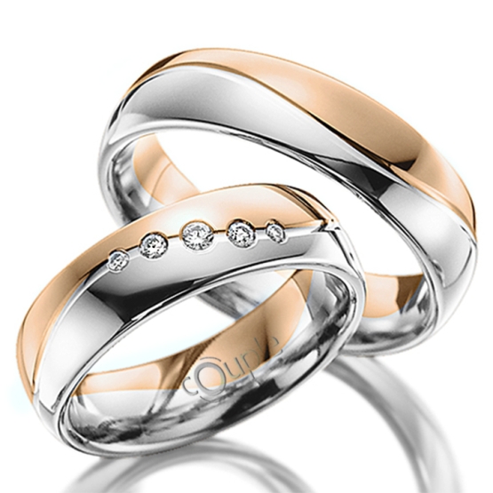 Snubní prsteny Missy zdobí po obvodu roztančená vlnovka. Moderní design se zde snoubí s elegancí drahého kovu. Vyberte si barvu zlata (bílá, žlutá, růžová či některou z jejich kombinací), i počet kamínků, které usadíme do prstenu pro nevěstu.