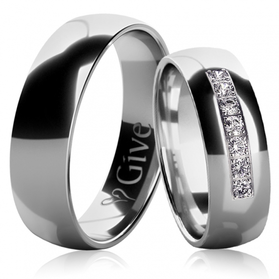 Výraznější snubní prsteny budou třešničkou na dortu Vašeho velkého dne. Hladký pánský prstýnek v lesklé povrchové úpravě krásně doplňuje ten dámský, osazený zářivými kameny. Jejich počet a kvalitu si volíte sami, stejně jako barvu zlata.