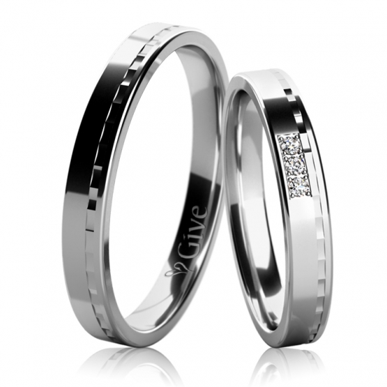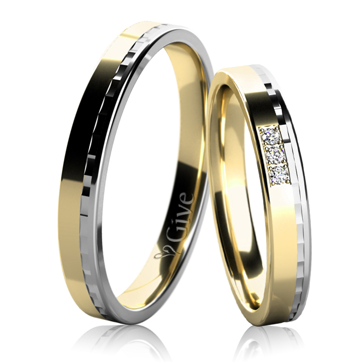 Snubní prsteny Sharyn v moderním minimalistickém provedení. Obroučku zdobí po obvodu jemná rytina. Prsteny vytvoříme z bílého, růžového či žlutého zlata nebo jejich kombinací, v lesklé či matné úpravě dle Vašeho přání. Sami si také určíte počet kamenů, které budou krášlit prsten pro ni. Jak se Vám líbí?