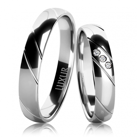 Snubní prstýnky Tasia Vás ohromí svým moderním designem. Hladká obroučka drahého kovu je ozvláštněná zajímavou diamantovou rytinou. Vyberte si sami barvu zlata a počet kamínků, ktere ozdobí prsten pro dámu.