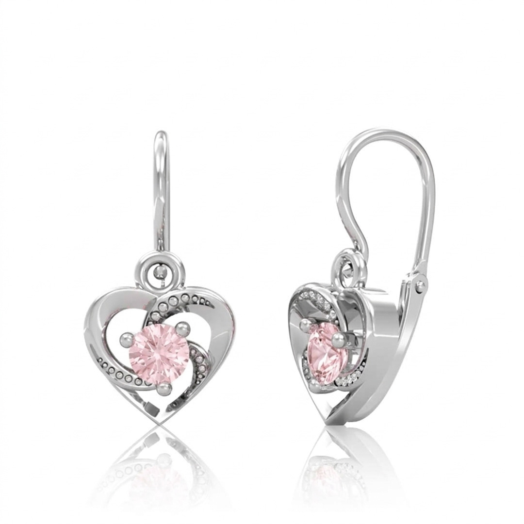 Popis produktu: Srdíčkové dětské náušnice Lylou, bílé zlato a růžové zirkony
