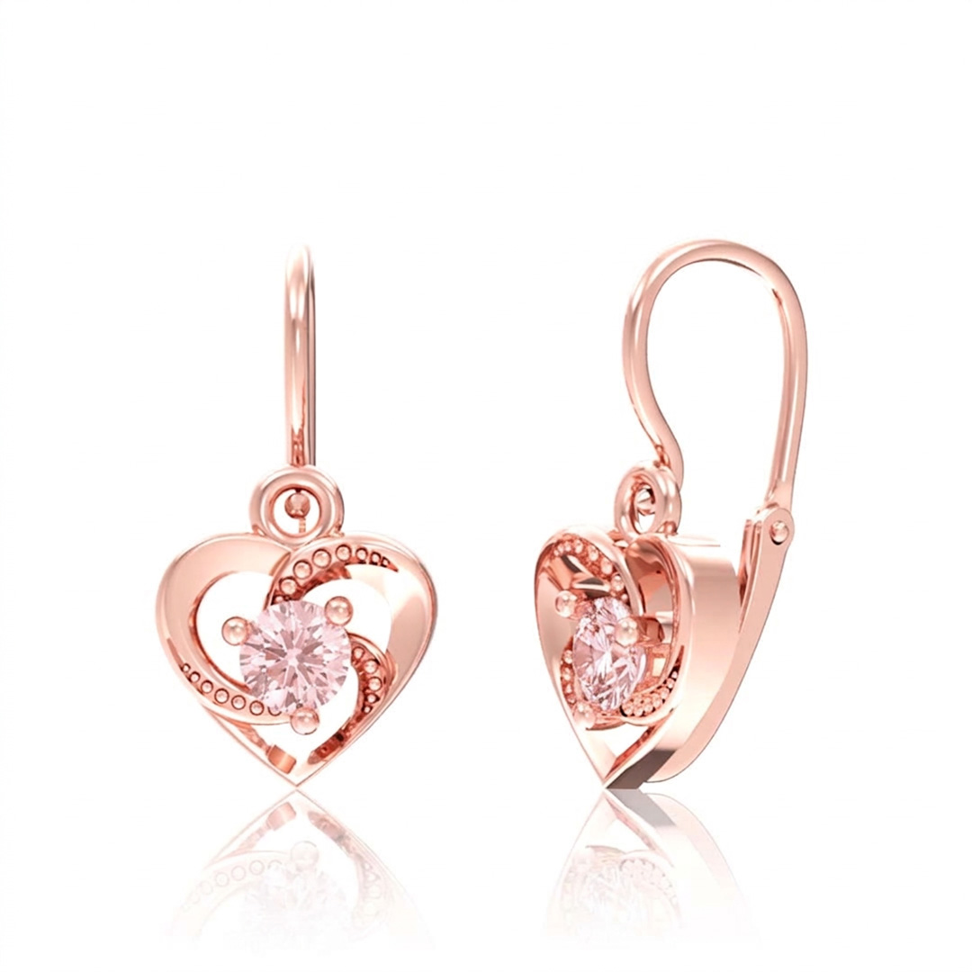 Popis produktu: Srdíčkové dětské náušnice Lylou, růžové zlato a růžové zirkony