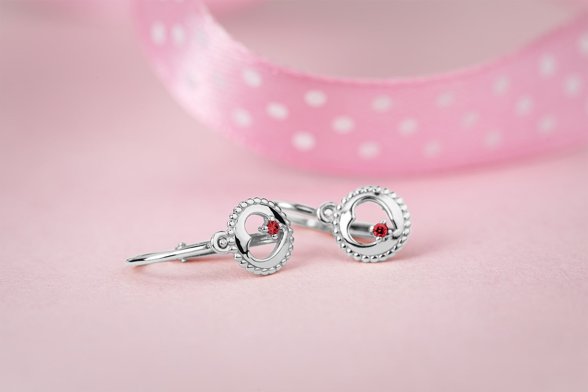 Popis produktu: Srdíčkové dětské náušnice Orin, bílé zlato s barevnými zirkony
