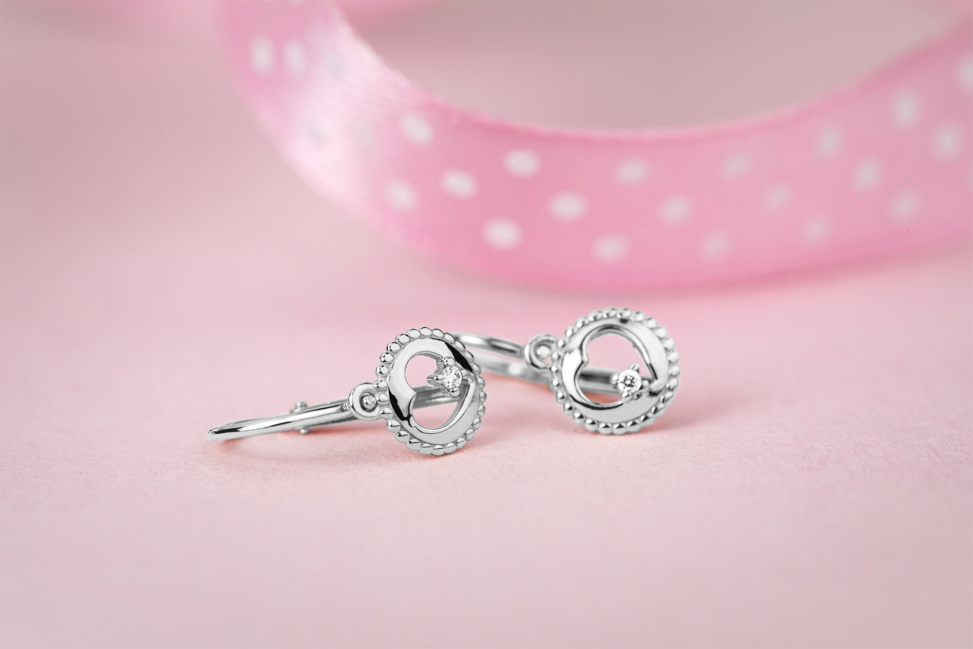 Popis produktu: Srdíčkové dětské náušnice Orin, bílé zlato s brilianty