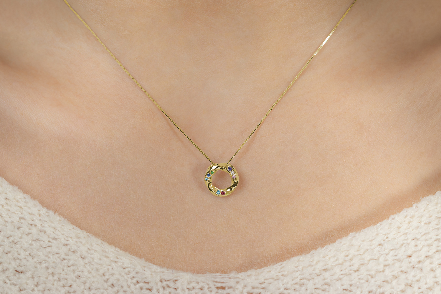 Popis produktu: Stylový přívěsek Garland, žluté zlato s barevnými zirkony