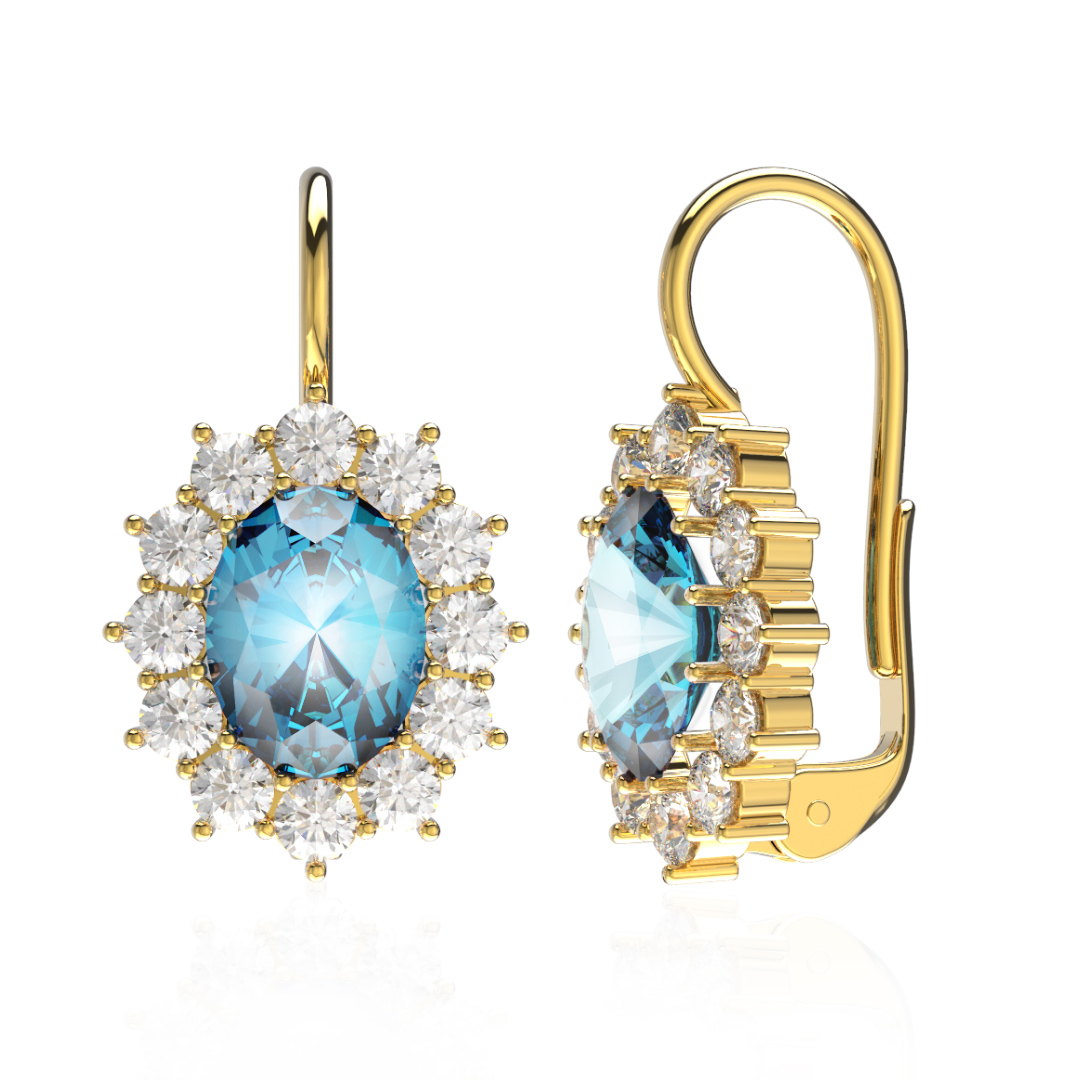 Popis produktu: Velkolepé náušnice Diana se světle modrými zirkony, žluté zlato