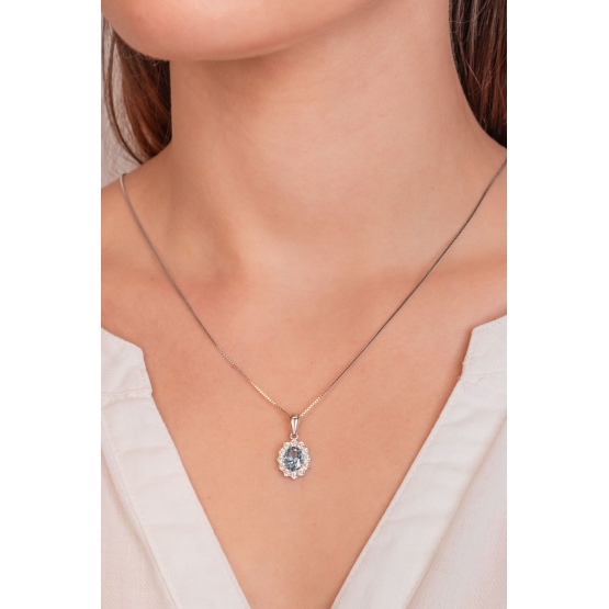 Popis produktu: Velkolepý přívěsek Diana se světle modrým zirkonem, bílé zlato